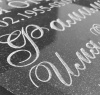 - Возможность глубокой, "объемной" резки (до 5 мм), чего невозможно достичь при обычной гравировке. Глубоко прорезанные буквы и цифры покрываются золотистой и серебристой краской, и выглядят максимально выразительно, можно не покрывать краской и оставить естественный цвет камня, в дальнейшем не придется подкрашивать;
